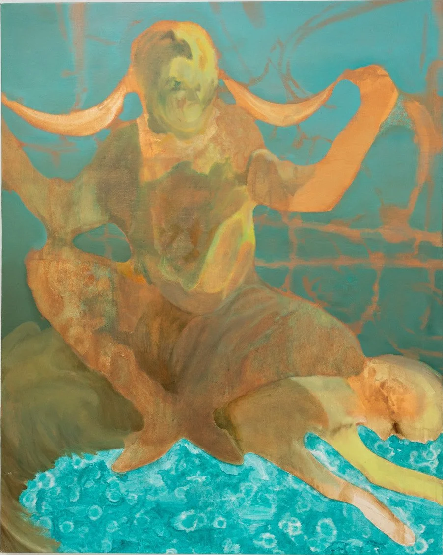 Casati crea e dirige un suo tempo, donandolo ai soggetti che popolano i dipinti. L’impiego contemporaneo di colori ad olio e acrilico si trasforma in uno strumento con il quale scandisce momenti, sospende i secondi, comprime lo spazio che è inscindibile dal tempo stesso. Siamo attratti da un ricordo, dal passaggio di un’immagine che l’artista decide come e quando mostrare, coprire, far transitare, depositare, fluttuare, percorrere. I soggetti hanno meno presenza scenica, sono intrisi di esistenza spaziale più che dettagliata. Non manca l’immagine, anzi riusciamo a percepire un senso di partecipazione attraverso l’assenza dei dettagli, la velatura, vari stadi di qualcuno o qualcosa che si manifestano in momenti diversi della loro esistenza.