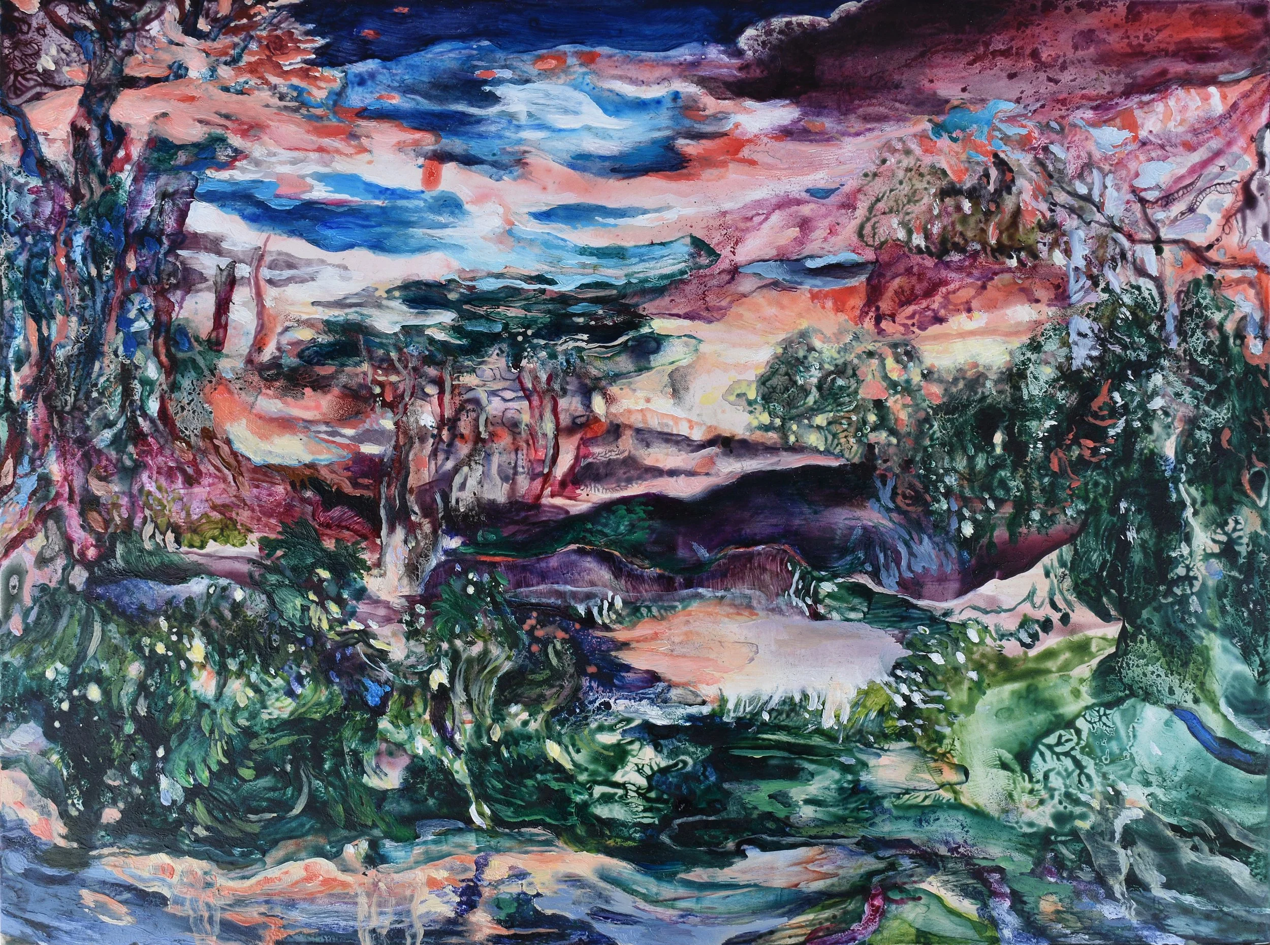 Terre fluttuanti #2, 2024, olio e acrilico su tela, 80x60 cm